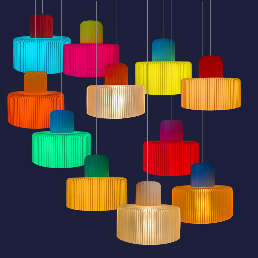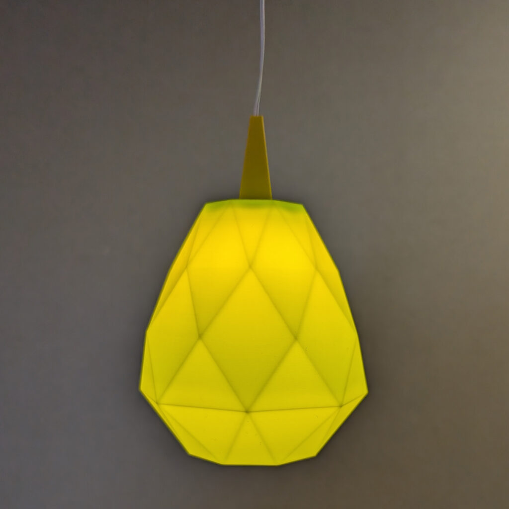 Wir drucken Dir aber auch sehr gerne farbige Lampenschirme. Sonnenblumengelb, pink und orange stehen Dir zur Auswahl – allerdings sind die farbigen Schirme aus PLA. Diese wird aus Maisstärke gewonnen, ist daher umweltfreundlich.
